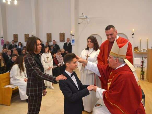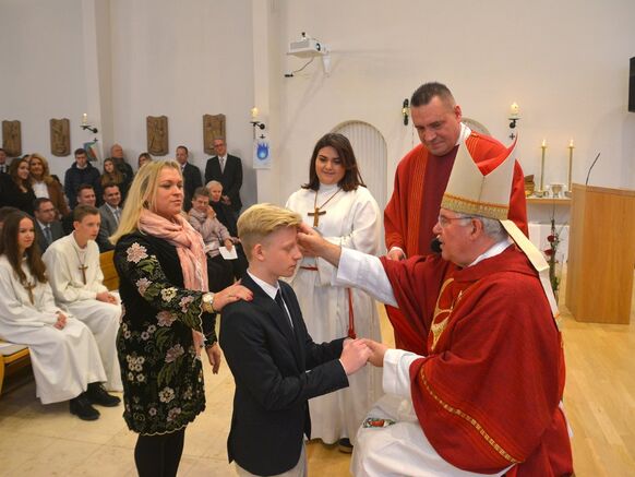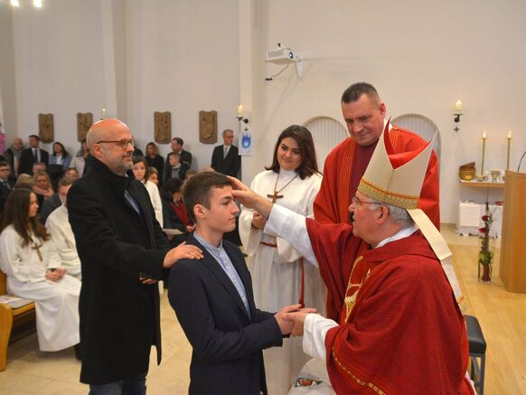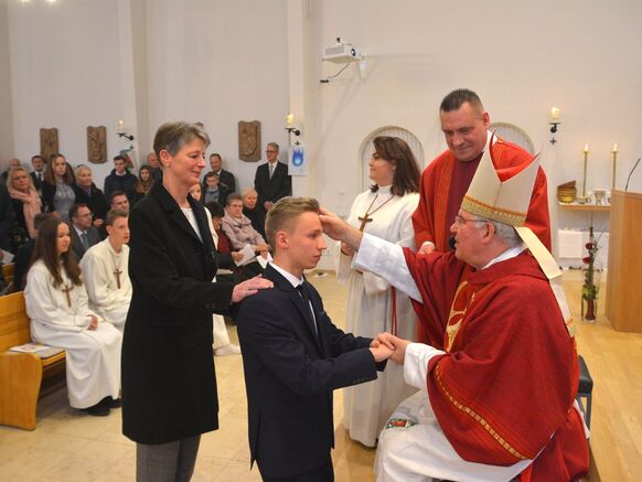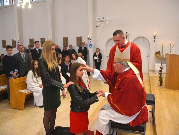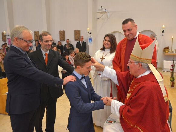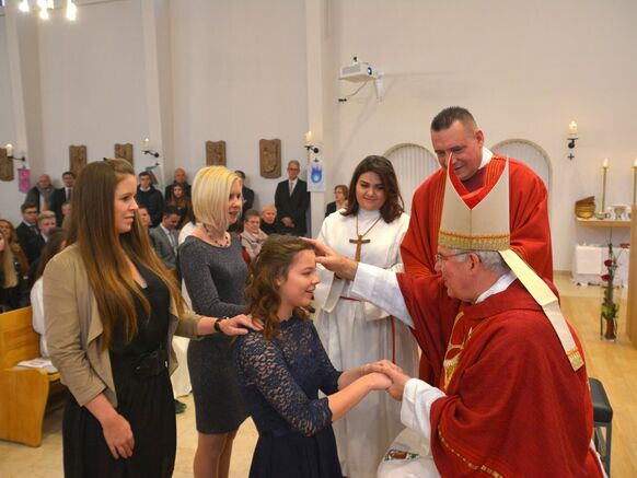 Die Kraft des Heiligen Geistes ermutigt die Jugendlichen, Verantwortung für ihr Leben, das Leben ihrer Mitmenschen und ihr Leben mit Gott zu übernehmen. Diese Fürsorge füreinander kam auch im Motto der Firmanden zum Ausdruck – „#Kirche sind wir“. Die Firmung (vom lateinischen „ firmare" = bestärken, festigen) ist ein besonderer Schritt vom Kindsein hin zum Erwachsenwerden und bedarf guter Vorbereitung. Diese wurde in den vergangenen Monaten von den Katecheten Johanna Ritz, Susanne Zelck, Dominik Weng, Detlef Rochow und Pfarrer Jürgen Heldmann angeleitet und begleitet, wofür sich die Neugefirmten ganz herzlich bedankten.