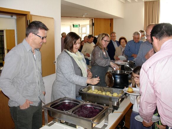 Austausch und Gespräch im Gemeindehaus und genossen dabei das leckere