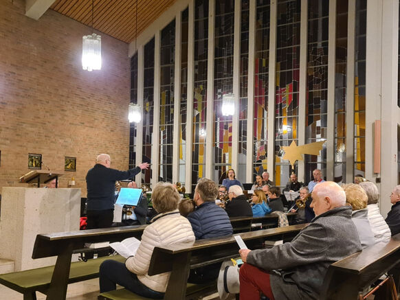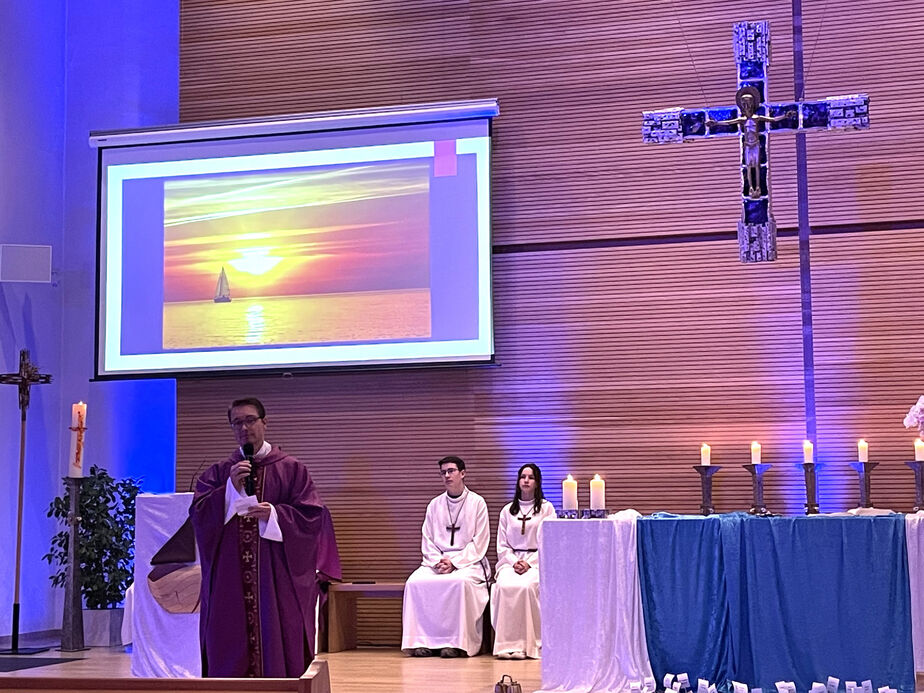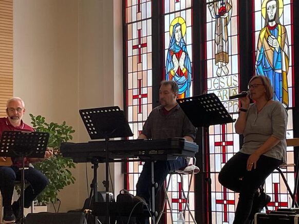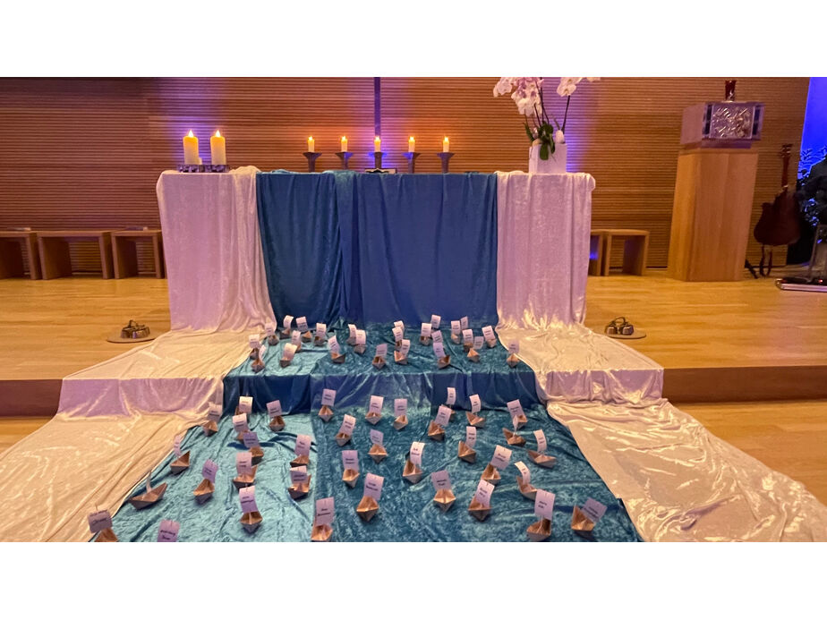 Nach der Heiligen Messe folgte wieder eine besondere Zeit der Anbetung. Pfarrer Alexander Best und Diakon Andreas Szumski standen für ein Gespräch bereit. Liebevoll gestaltete Schiffe mit den Namen der Verstorbenen und Kärtchen mit der Geschichte des Schiffes konnten zur Erinnerung mitgenommen werden. Die Band „Taktel“ begleitete den Gottesdienst mit gefühlvollen Liedern. Der Abend klang bei einer leckeren Kürbissuppe und interessanten Gesprächen aus. Wieder war es eine gesegnete Zeit. Der nächste Rejoice-Lobpreisgottesdienst findet am 15. März 2025 statt und alle sind herzlich willkommen.