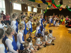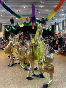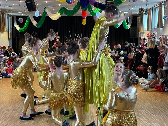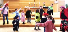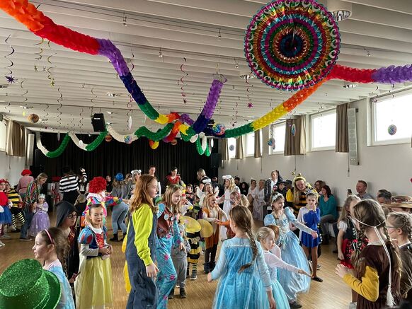 Kinder in ihren bunten Faschingskostümen. Gemeinsam mit den ehrenamtlichen