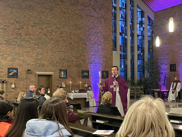 Bruchköbel: Dreimal jährlich findet in Bruchköbel ein Rejoice-Lobpreisgottesdienst statt. Eine besondere Heilige Messe mit anschließender Lobpreis- und Anbetungszeit. Besondere Elemente prägen diese Zeit. „Verzicht“ war das Thema am letzten Wochenende und Domkapitular Thomas Renze aus Fulda machte eindrücklich deutlich was man wirklich braucht. „Auf was kann man alles verzichten?“, Welche Dinge kann ich reduzieren?“ so seine Eingangsfragen. Er berichtete dann von seinen Erfahrungen in der jordanischen Wüste und führte aus, „auf was er nicht verzichten konnte“. Auf Essen und Trinken, auf Gemeinschaft und Gebet. Dies seien grundlegende menschliche Bedürfnisse. Menschen brauchen das Gegenüber, ansonsten verkümmern sie. Eine tiefe Sehnsucht, dass es etwas Größeres gibt, führe ins Gebet. In der aktuellen Fastenzeit gilt es, sich dies bewusst zu machen. Man sollte gerade in dieser Zeit auf Luxus und Annehmlichkeiten verzichten und sich bewusst machen, dass viele Menschen darauf unfreiwillig verzichten müssen und wir aufgrund unseres Verzichtes andere unterstützen können. Als positives Beispiel benannte Thomas Renze die bekannte Ordensschwester Mutter Teresa, die in ihrem Leben auf allen Prunk verzichtete und sich um Arme, Einsame und Kranke kümmerte. „Gerade in der Fastenzeit kann ich das Wesentliche neu entdecken und meine persönliche Spur neu justieren“, so Thomas Renze am Schluss seiner beeindruckenden Aussagen.