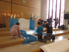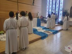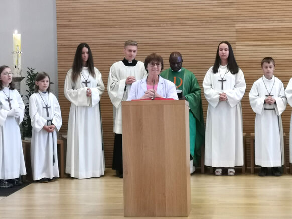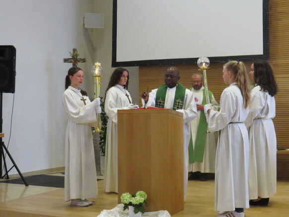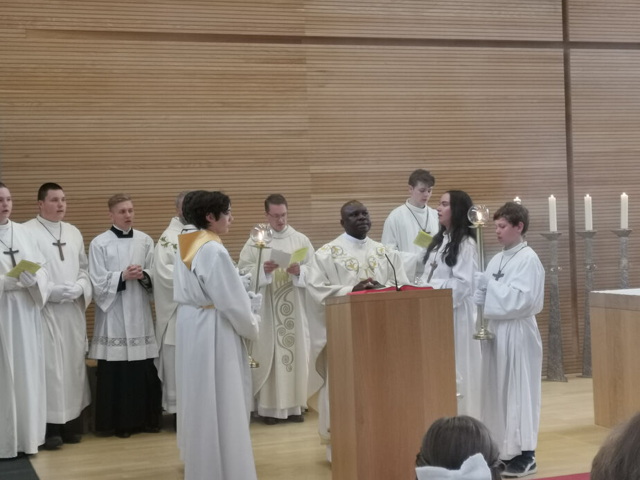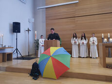 Fürbitten vortrugen und an der Gabenbereitung beteiligt waren. Die Projekt-band