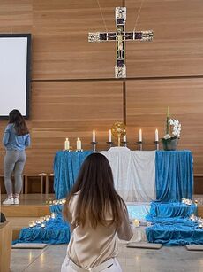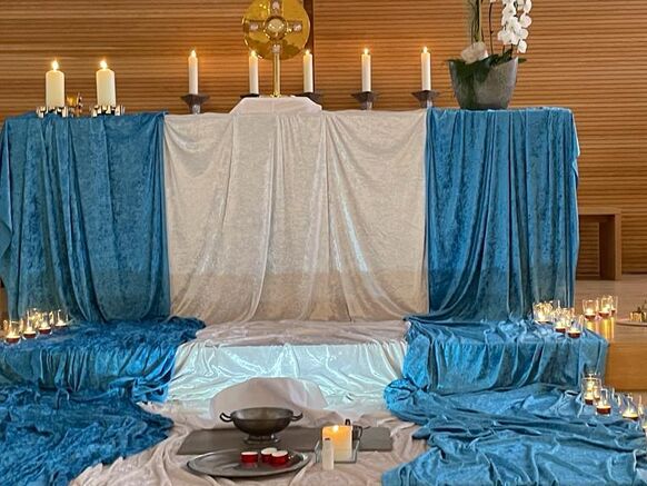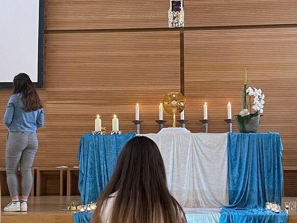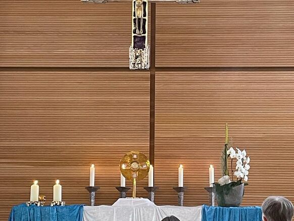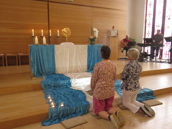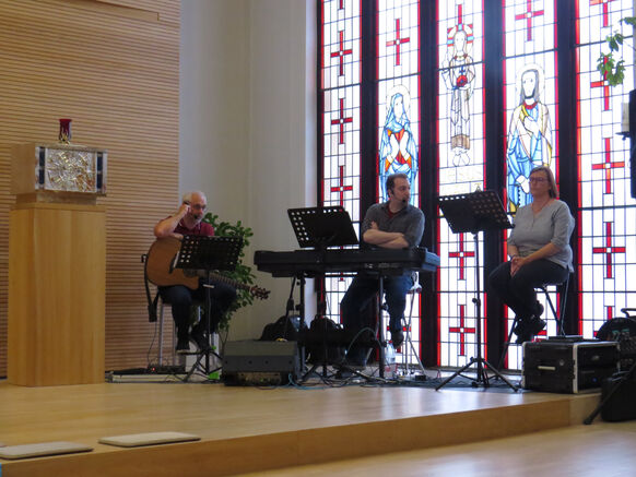Nach der Eucharistiefeier folgte eine besondere Zeit der Anbetung. Viele Anwesende nutzten die Möglichkeit und gingen zum Altar nach vorne, ganz persönlich zu Jesus, beteten, zündeten eine Kerze an, nahmen ein Wort Jesu mit auf ihren Weg. Auch die Möglichkeit für ein Gespräch mit den anwesenden Priestern wurde genutzt. Die musikalische Gestaltung übernahm an diesem Abend die Band Taktel. Der Abend wurde abgerundet durch die Möglichkeit zu einem Gespräch und liebevoll vorbereiteten Snacks. Die nächsten Rejoice-Lobpreisgottesdienste finden am 1. Juli und 4. November statt. Alle sind wieder herzlich eingeladen!