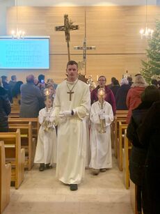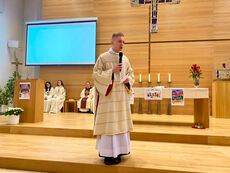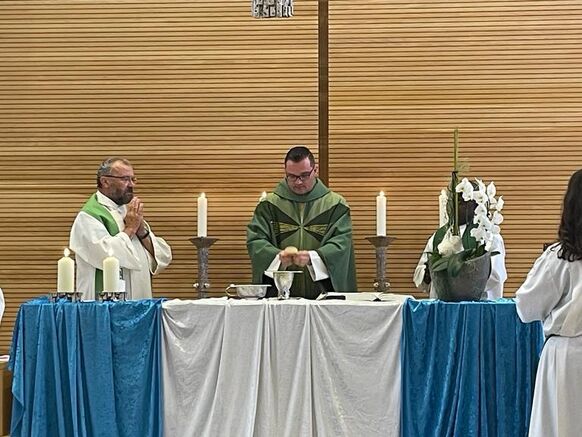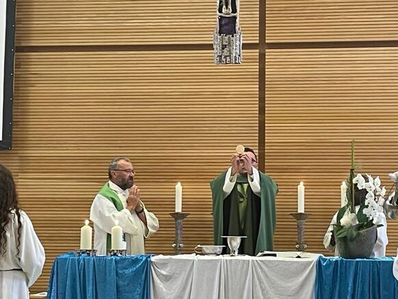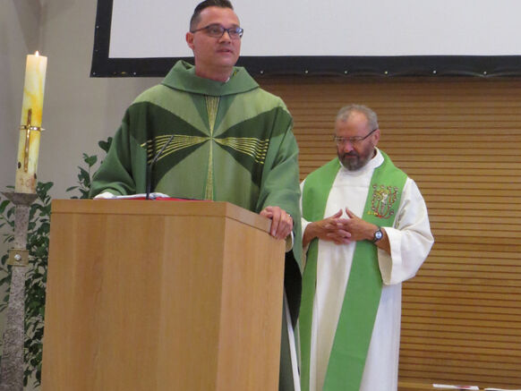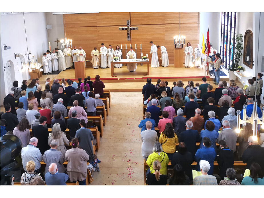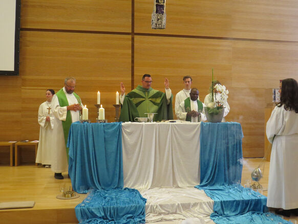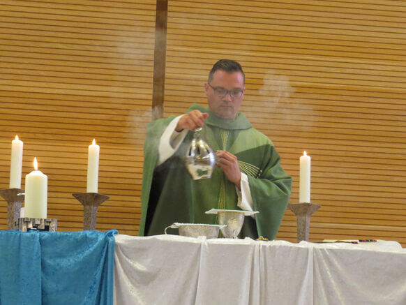 Herr Pfarrer Manuel Stickel, Pfarradministrator in Sankt Klara und Franziskus in Hanau, zelebrierte gemeinsam mit Diakon Andreas Szumski in diesem Jahr die Heilige Messe zum Kirchweihfest der katholischen Pfarrgemeinde Sankt Familia in Bruchköbel. Zu Beginn wies er auf den besonderen Anlass in Anlehnung an den bekannten Song von Udo Jürgens hin. In seiner Predigt würdigte er dann die vielen ehrenamtlichen Mitarbeitenden, die sich mit ihren vielfältigen Fähigkeiten und Begabungen in die verschiedensten Gemeindedienste einbringen.