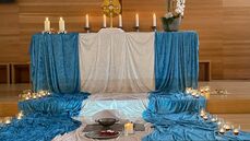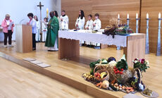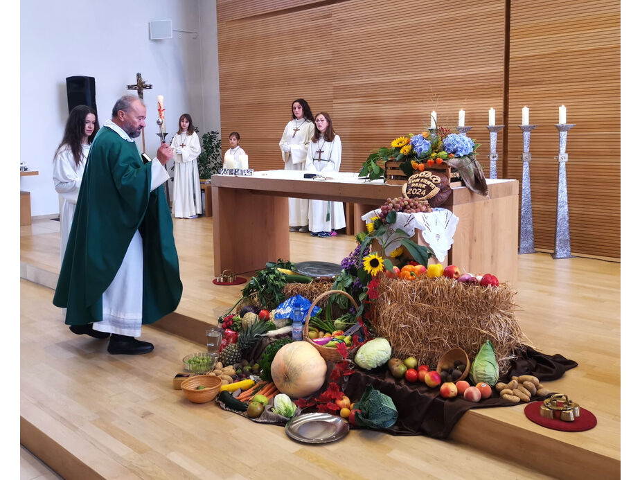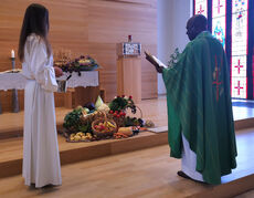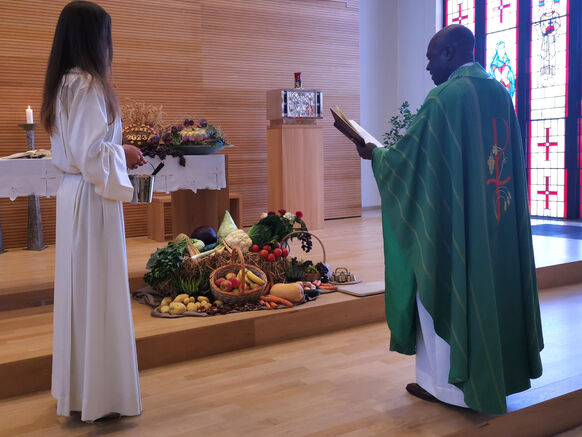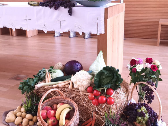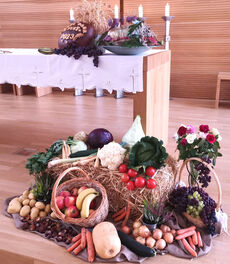 Vor dem Altar wurden Gaben aus der Natur wie Feldfrüchte, Obst und Gemüse aber
