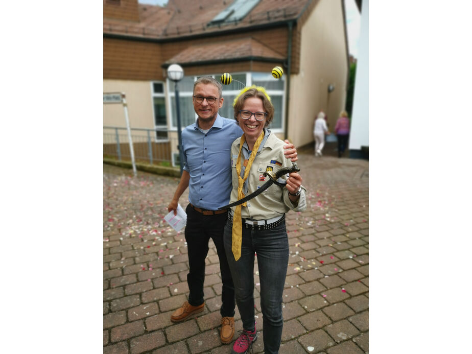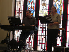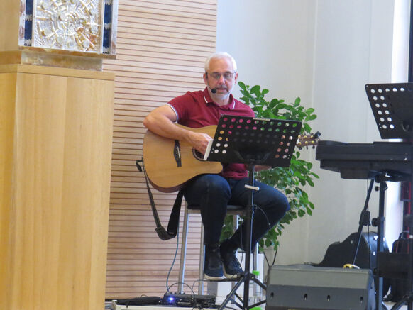 Pfarrer Alexander Best und Pfarrerin Elsbeth Balzer führten durch den Gottesdienst, der wie üblich vom Posaunenchor Bruchköbel und der „Öku-Band“ musikalisch eindrucksvoll mitgestaltet wurde.