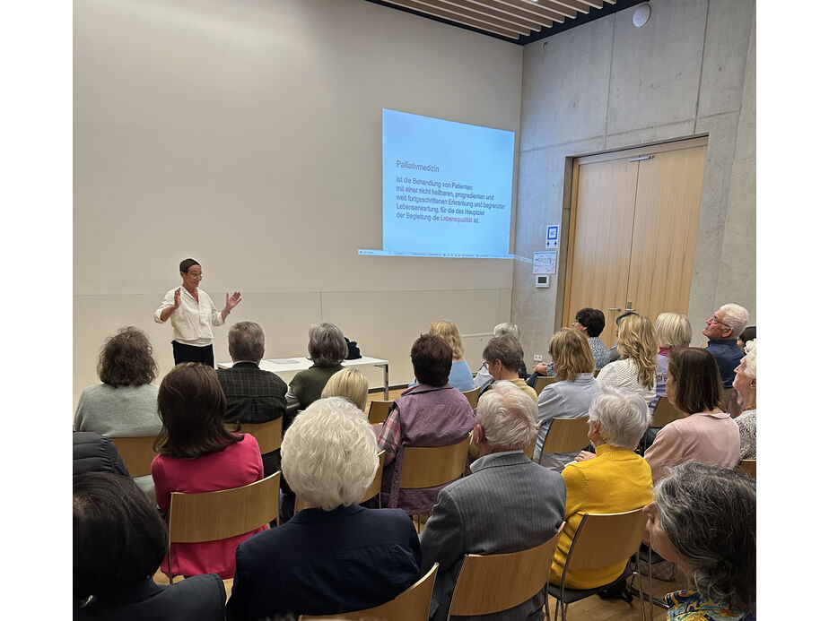 In einem weiteren Impuls beleuchtete Dr. Maria Haas-Weber gefühlvoll die Frage nach einem würdigen Leben bis zuletzt und zeigte die Möglichkeiten einer palliativen Versorgung auf.