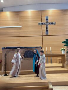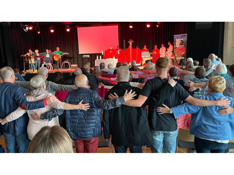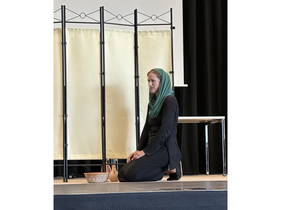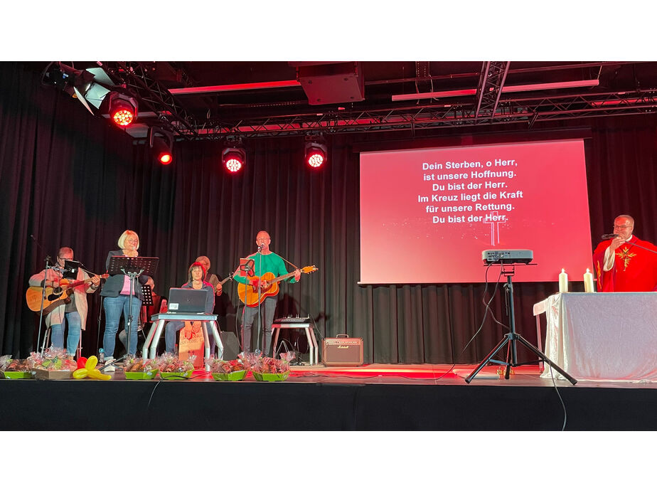 Die Impulse spiegelten das Motto des Tages „Aus Liebe“ wider. Die Band Rückenwind aus Neuhof führte gefühlvoll in den Lobpreis Gottes. Pfarrer Weber benannte in seinen Ausführungen das glaubensstärkende Vorbild der heiligen Thérèse von Lisieux, deren Botschaft ein liebender Vater im Himmel sei und wir in den kleinen Dingen des Lebens seine Liebe widerspiegeln können. Anschließend vertiefte Romina Mallwitz mit einem ergreifenden Theaterstück das Thema Liebe anhand der Lebensgeschichte der Frau des Petrus. Eindrücklich stellte sie die Emotionen dar und so kämpften nicht wenige Zuschauer mit ihren Tränen.