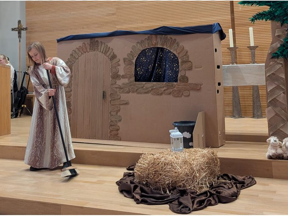 Toni war ein Engel, der vor lauter Putzerei fast den großen Auftrag verschusselt: Die frohe Botschaft von der Geburt Jesu weiterzugeben. Mit zitternden Flügeln und einem Hauch liebenswerter Unordnung taumelt er durch die Szenen, brachte die Hirten zum Schmunzeln und sorgte schließlich doch dafür, dass die Botschaft von der Geburt des Retters sicher ihr Ziel erreichte.