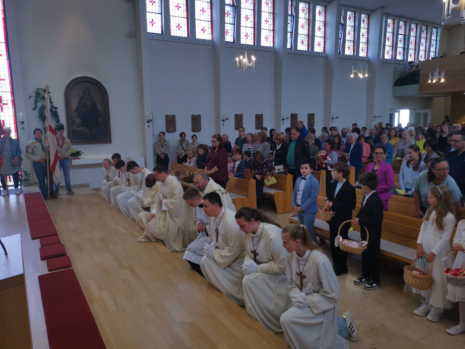 die Erstkommunionfeier statt. Neben Pfarrer Best und der Gemeindereferentin wurde