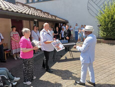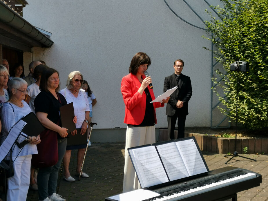 Auf dem Pfarrhof in Sankt Familia dankte der Kirchenchor musikalisch für die